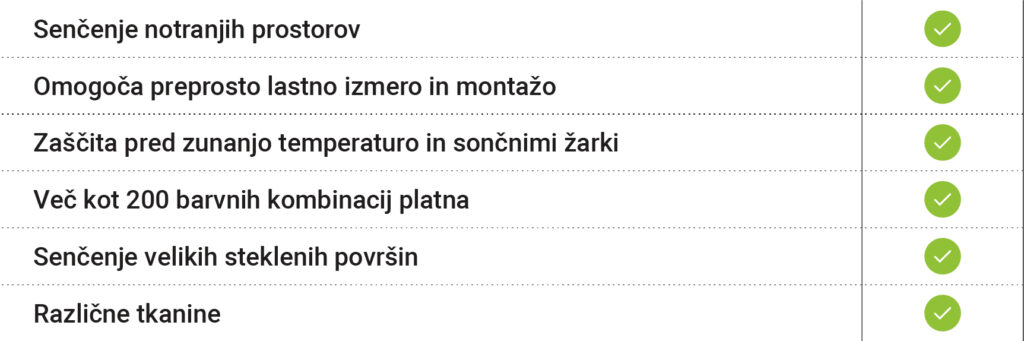 Iščete učinkovit način za senčenje vašega prostora, ki je hkrati minimalističnega izgleda in primeren za nove ter stare gradnje? Odločite se med tipom tkanin, njeno prosojnostjo in barvo tkanine.
