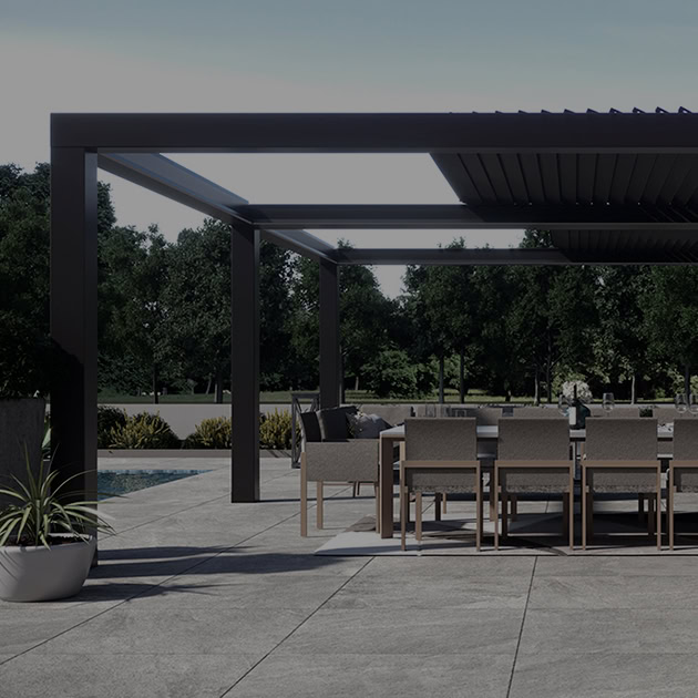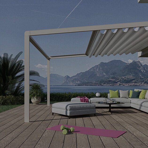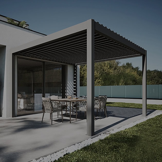 Bioklimatska pergola je edini produkt, ki obenem v sončnem vremenu zagotavlja senco in zračenje, streho nad glavo v dežju ter optimalno svetlobo v pomladnih in jesenskih mesecih. Vse to je mogoče zaradi stropnih lamel, ki se na vašo željo obračajo pod različnimi koti. Bioklimatsko pergolo lahko kombiniramo z različnimi opcijami zapiranja stranic, ki dodatno povečajo udobje bivanja pod njo.